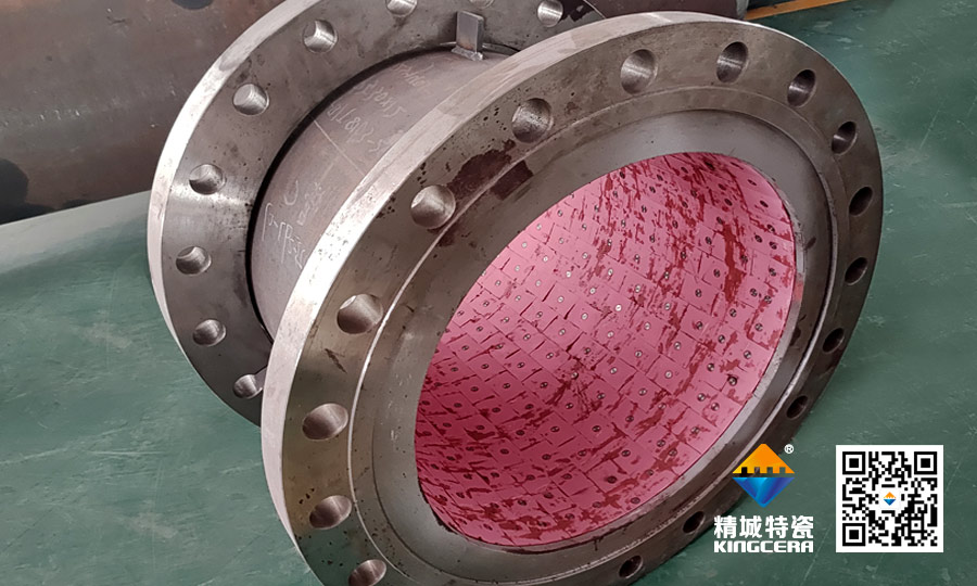 2、產品選型很重要,正確的選型是在充分了解設備工況和磨損原因的基礎上對癥下藥。比如增濕塔出口高溫風機彎頭、窯頭靜電收塵器彎頭一般運行溫度是350℃左右,但是經常會超過350℃,甚至達到500℃。這種情況就不能僅靠粘膠粘貼,要配合機械固定,湖南精城針對高溫工況開發了一種焊接型耐磨陶瓷,特別適合高溫氣力輸送管道防磨。針對動態運行如風機葉輪,他們開發了燕尾槽結構陶瓷,在我廠使用效果也很好。